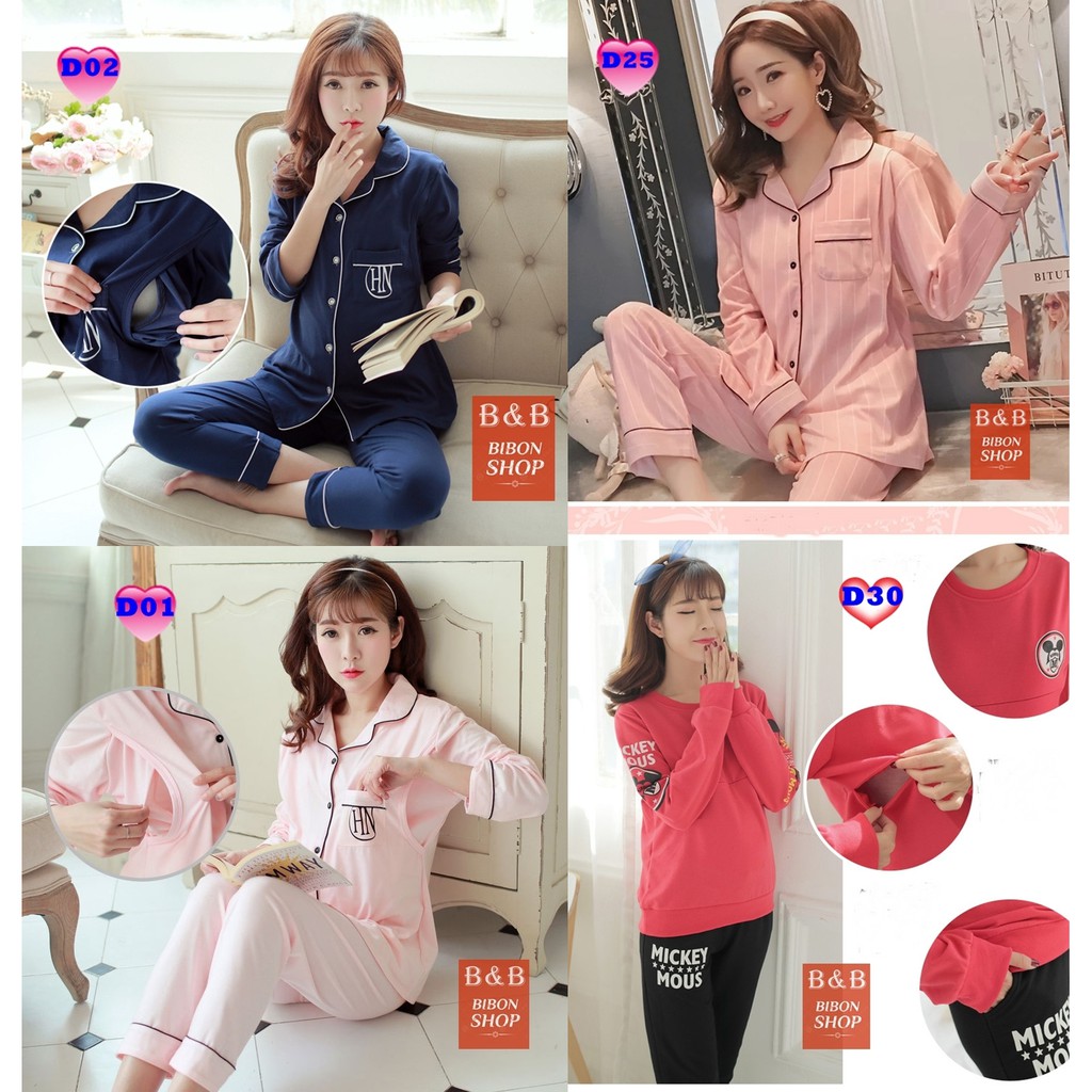 Bộ Pijama BẦU VÀ SAU SINH [HÀNG QUẢNG CHÂU] có thiết kế cho con bú
