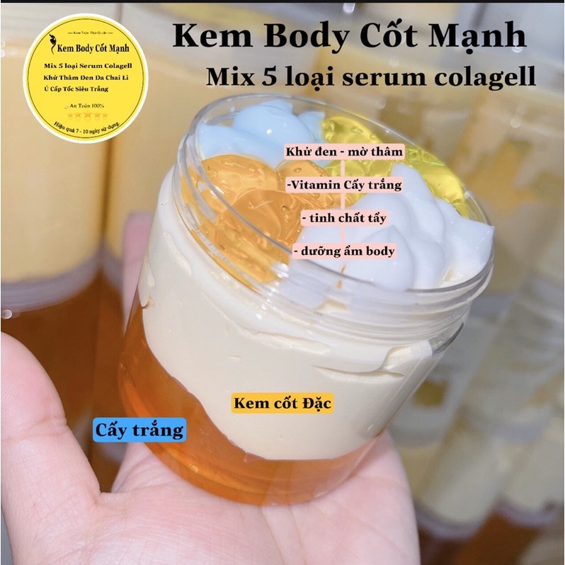[ Độc Quyền ]Kem Trôn Body Cốt Mạnh 220gr ( Mix thêm 5 loại serum dành cho da đen lì ) cốt kem nhà Vĩnh Elly free ship